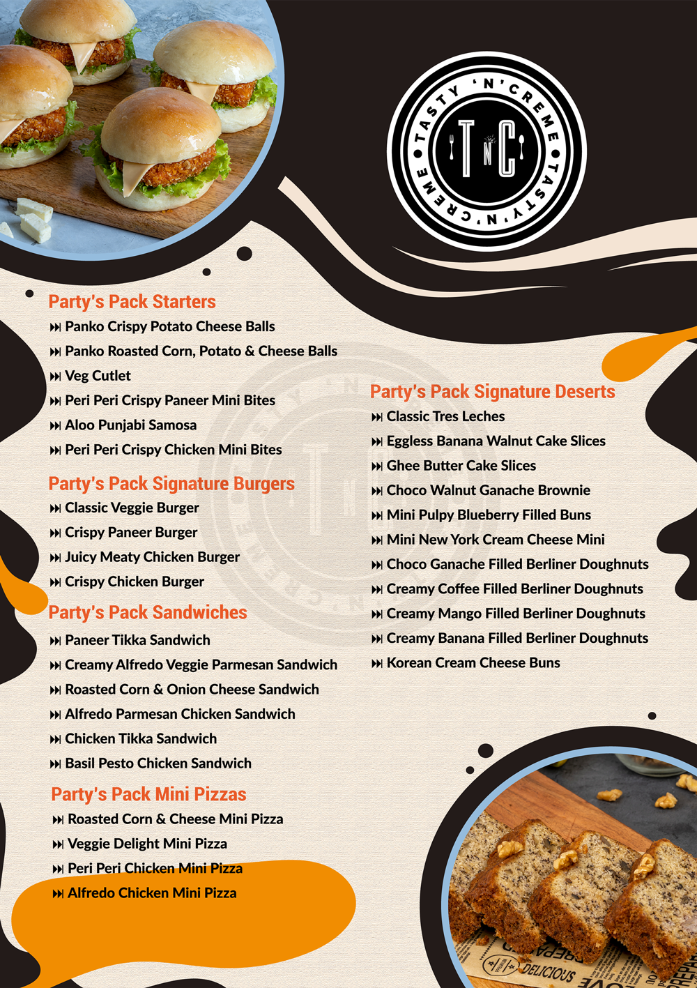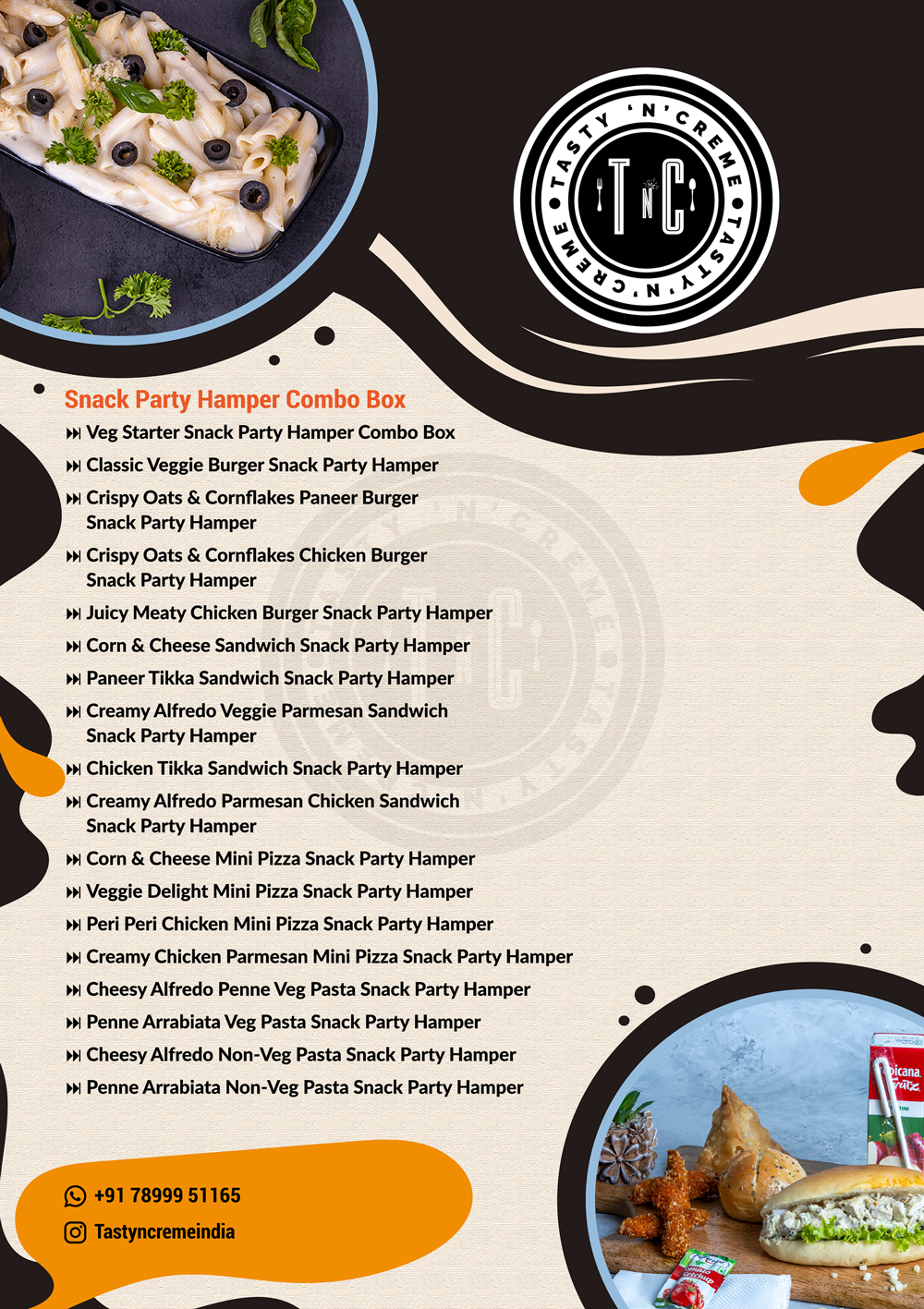 Tasty N Crème delivers fresh, preservative-free snacks, handmade breads, customizable party hampers, global flavors, and refreshing pressed juices with quick doorstep delivery—perfect for birthdays, corporate events, and joyful celebrations.